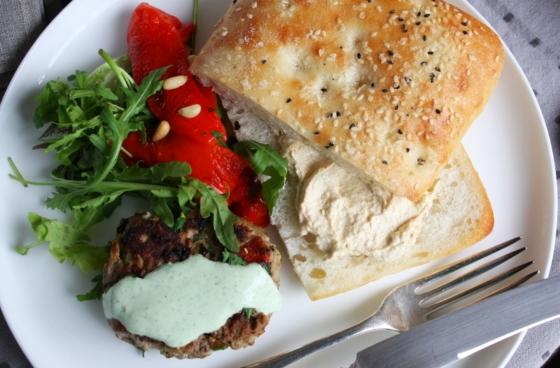 Saturday lunch requires something easy and tasty, as the weekend mornings are often full of busyness and household chores. These lamb burgers fit the bill at our place, and they are packed with wonderful ingredients like garlic, pine nuts, chilli and cumin. Served on turkish bread with roasted capsicum, hummus and a minty fresh greek yoghurt, they are a universe away from a fast food burger and a million times better. You can roast your own capsicums and make your own hummus, but good quality store bought ones are great too, and then pulling these burgers together is a breeze. Your family will love them and be ready for a fun-filled Saturday afternoon.